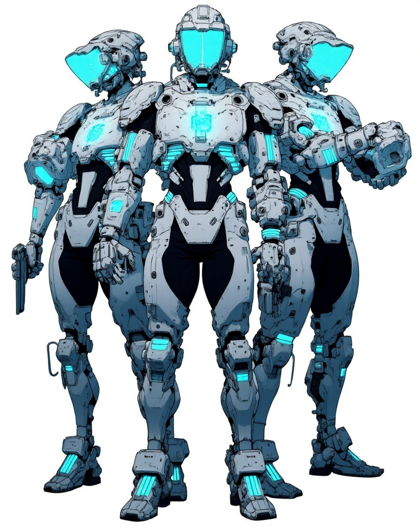 TerraCore Exo-Frame: – Energy shield generator – Integrated satellite uplink – Modular weapon systems – Environmental adaptation kit – Scientific scanner for terrain & atmosphere – AI-assisted decision protocols |